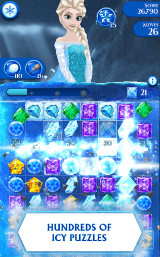 HER KARAKTER İÇİN ÖZEL VE BENZERSİZ GÜÇLENDİRMELER – Anna’nın meşalesiyle aynı sıradaki tüm kristalleri yakın veya Elsa’nın buzul güçlendirmesiyle aynı renkteki kristalleri sihirle yok edin! Hans’ın kılıcıyla kristalleri ikiye ayırın ve pek çok diğer harika güçlendirmeyi keşfedin!